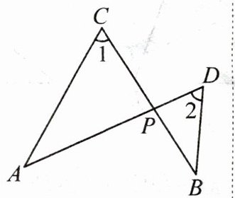 7. (2023·广州增城区期末) 如图,$AD$,$BC$ 相交于点 $P$,连接 $AC$,$BD$,且 $\angle 1 = \angle 2$,$AC = 6$,$CP = 4$,$DP = 2$,求 $BD$ 的长。