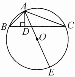 10. 如图,$\triangle ABC$ 内接于 $\odot O$,$AD\perp BC$,$AE$ 是 $\odot O$ 的直径。求证:$AB\cdot AC = AD\cdot AE$。