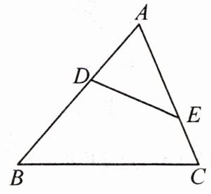 9. 如图,在 $\triangle ABC$ 中,点 $D$,$E$ 分别在边 $AB$,$AC$ 上,下列四个条件:① $\angle AED = \angle B$;② $DE// BC$;③ $\frac{AD}{AC} = \frac{AE}{AB}$;④ $AD\cdot BC = DE\cdot AC$。其中能满足 $\triangle ADE\backsim\triangle ACB$ 的有 (