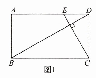 14. (1)如图 1,在矩形$ABCD$中,$AD = 7$,$CD = 4$,$E$是$AD$上的一点,连接$CE$,$BD$,且$CE\perp BD$,则$\frac{CE}{BD}$的值为