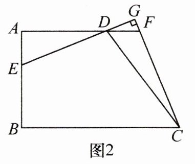;(2)如图 2,在四边形$ABCD$中,$\angle A=\angle B = 90^{\circ}$,$E$为$AB$上一点,连接$DE$,过点$C$作$DE$的垂线交$ED$的延长线于点$G$,交$AD$的延长线于点$F$。求证:$DE\cdot AB = CF\cdot AD$。