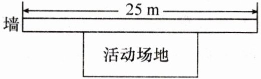 3.解:设活动场地垂直于墙的一边长为x m,则平行于墙的一边长为$(40-2x)m$.依题意,得$x(40-2x)=182$,解得$x_{1}=7,x_{2}=13$.当$x=7$时,$40-2x=26>25$,不符合题意,舍去;当$x=13$时,$40-2x=14<25$,符合题意.