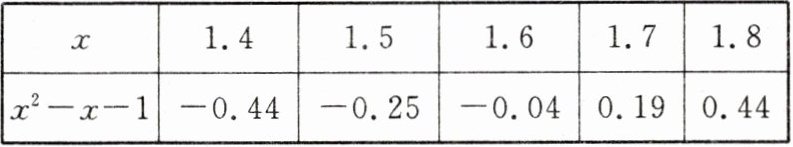 由此可确定一元二次方程 $ x^2 - x - 1 = 0 $ 的一个近似解 $ x $ 的取值范围是(
