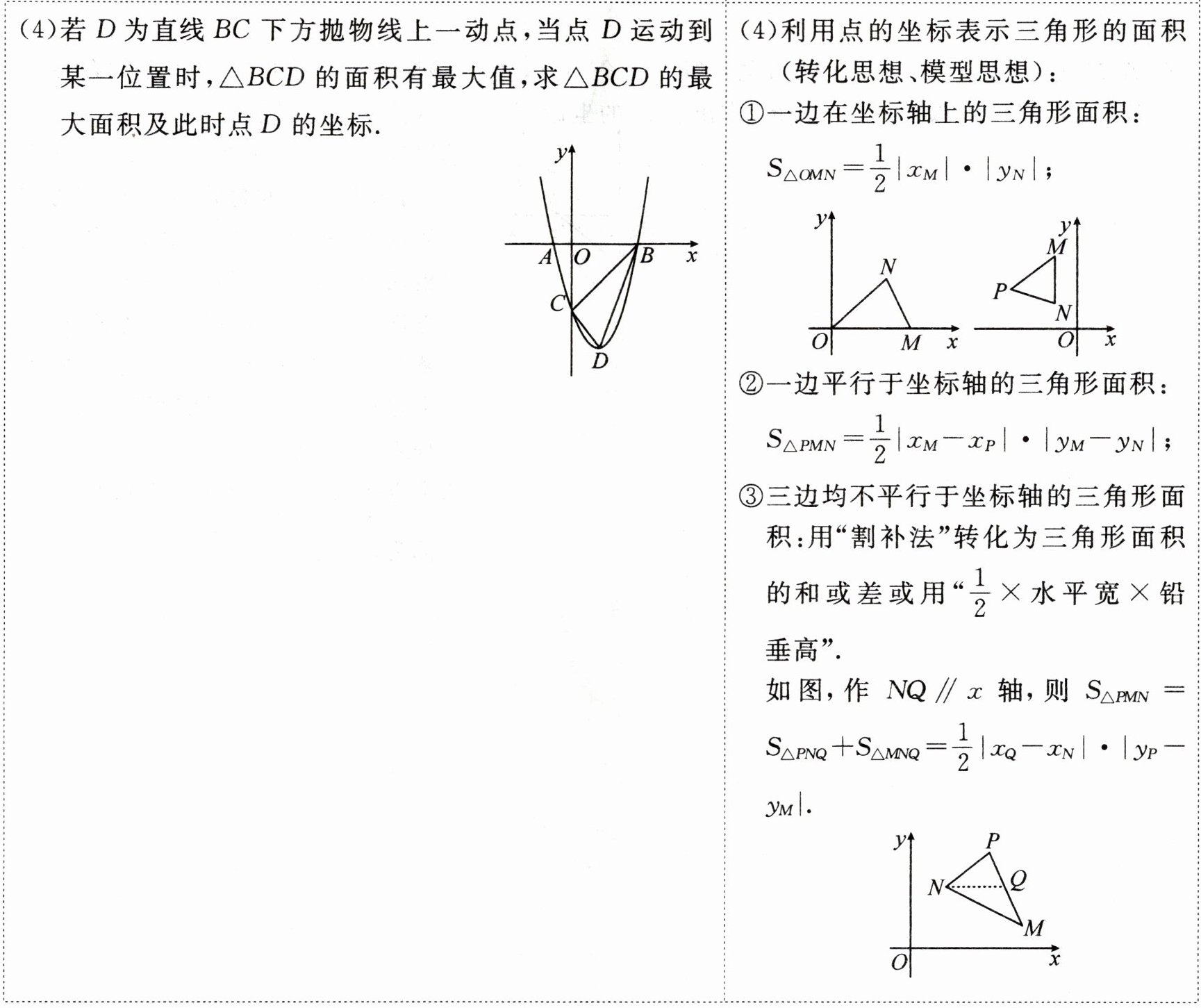 ∴当x=3/2时,S△BCD有最大值为27/8.此时D(3/2,-15/4).