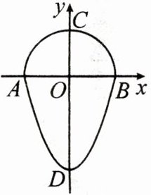 5. 新考向 抽象能力 (2024·东莞期中)如图,这是一个半圆和抛物线的一部分围成的“鸭梨”。已知点 $ A $,$ B $,$ C $,$ D $ 分别是“鸭梨”与坐标轴的交点,$ AB $ 是半圆的直径,抛物线的解析式为 $ y = 2x^{2} - 2 $,则图中 $ CD $ 的长为