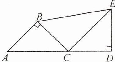 ∴AB=BC=1,∠ACB=45°.在 Rt△ABC 中,$AC=\sqrt {AB^{2}+BC^{2}}=\sqrt {1^{2}+1^{2}}=\sqrt {2}$.由旋转可知∠DCE=∠ACB=45°,CE=AC=$\sqrt {2}$.