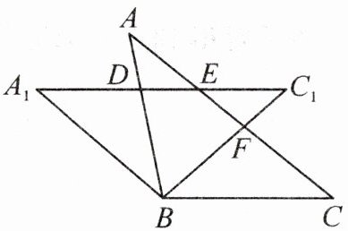 ∴∠A=∠C.由旋转的性质可知 A₁B=AB=BC,∠A=∠A₁=∠C,∠A₁BD=∠CBC₁.在△BCF 和△BA₁D 中,$\left\{\begin{array}{l} ∠CBF=∠A₁BD,\\ CB=A₁B,\\ ∠C=∠A₁,\end{array}\right.$