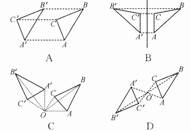 2. 下列各组图形中,$\triangle A'B'C'$ 与 $\triangle ABC$ 成中心对称的是( )