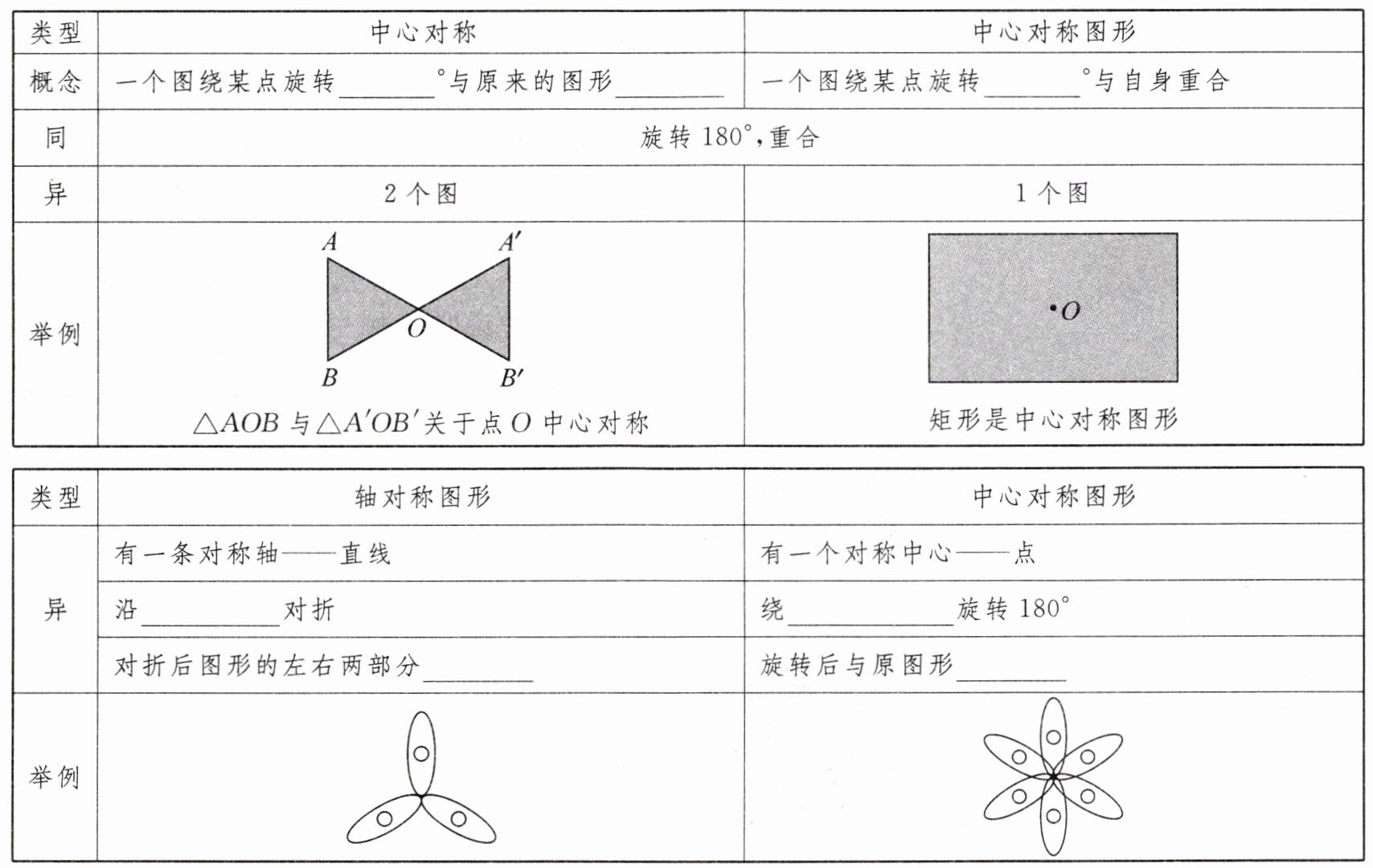 总结:180 重合 180 对称轴 对称中心 重合 重合