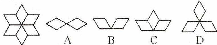 1. 【例1】如图所示的图案是由六个全等的菱形拼成的,它也可以看作是以一个图案为“基本图案”,通过旋转得到的.以下图案中,不能作为“基本图案”的是(