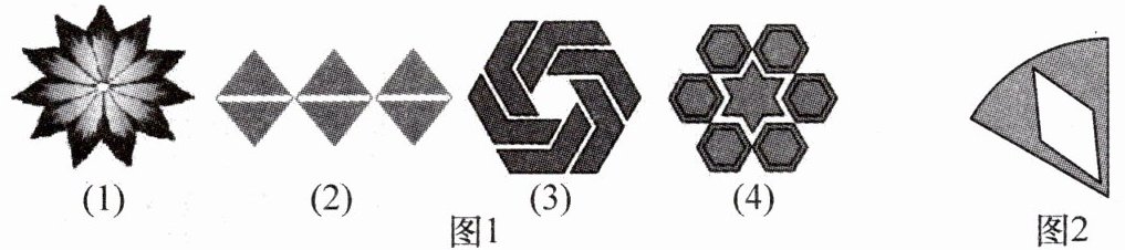 问题1:如图1,生活中我们会看到很多由一些几何图形组成的优美图案,你知道它们是怎样形成的吗?试说出构成下列图形的基本图形.