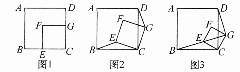 (3)若$AB=5\sqrt{2}$,$CE=\sqrt{2}$,将(1)中正方形$CEFG$绕点$C$旋转$\alpha$度$(0<\alpha<90)$,当$B$,$E$,$G$三点在同一条直线上(如图3)时,求$DG$的长.