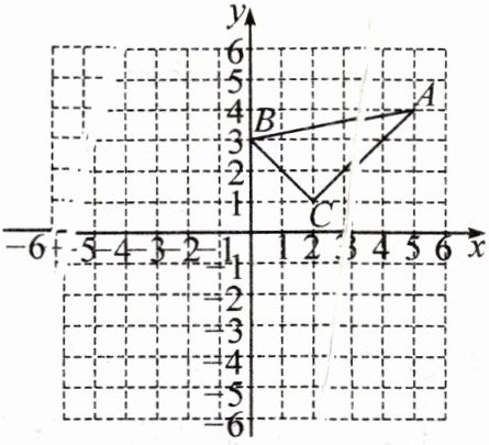 15. (2023·东莞期末)如图,在平面直角坐标系中,$ \triangle ABC $ 的三个顶点的坐标分别为 $ A(5, 4) $,$ B(0, 3) $,$ C(2, 1) $.