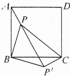 17. 如图,$ P $ 是正方形 $ ABCD $ 内一点,连接 $ PA $,$ PB $,$ PC $,将 $ \triangle ABP $ 绕点 $ B $ 顺时针旋转到 $ \triangle CBP' $ 的位置.