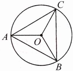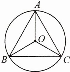 3. 【例 2】如图,在$\odot O$中,$\angle AOB=\angle AOC=\angle BOC$,$AB = 1$,求$\triangle ABC$的周长。