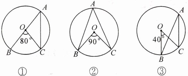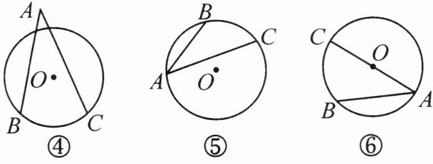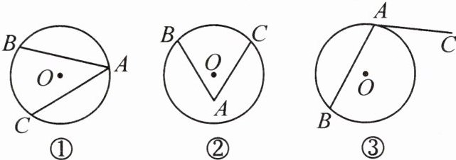 问题3: 请你根据圆周角与圆心的位置关系,在下图画出三种不同位置的圆周角$∠BAC$.