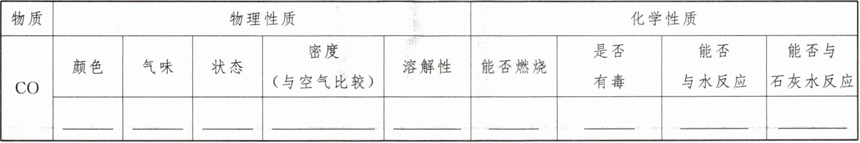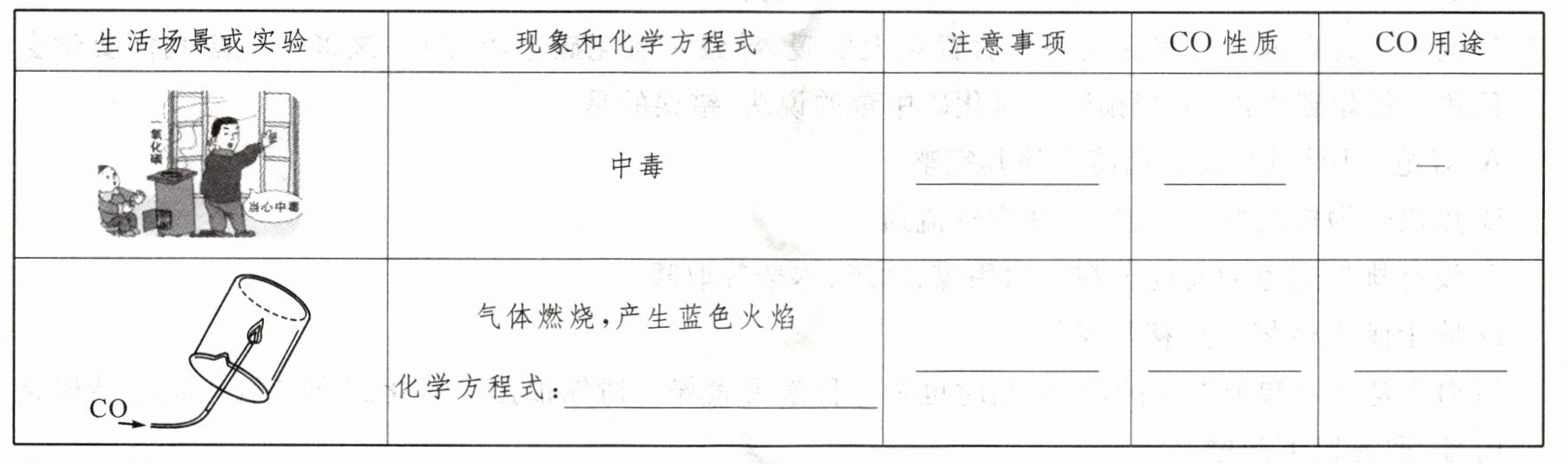 归纳: 请完成CO的性质总结。