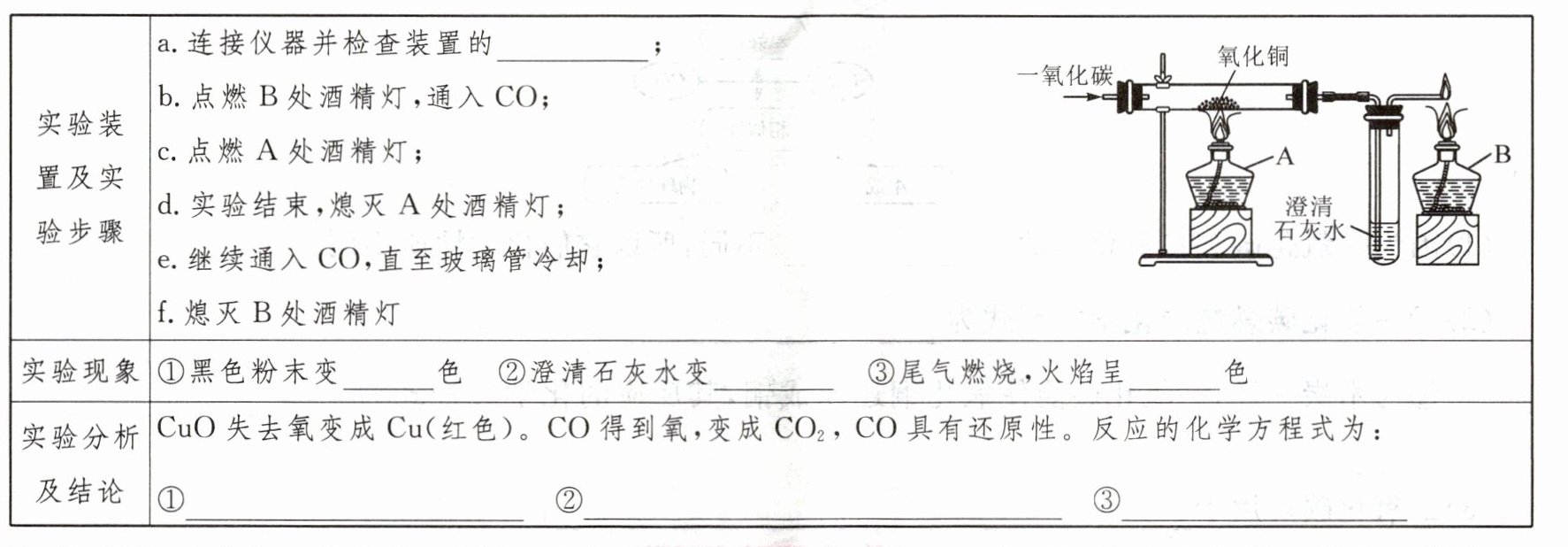 活动2 了解一氧化碳的还原性及一氧化碳还原氧化铜的实验。(拓展)