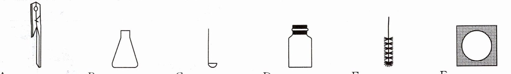 试管夹 锥形瓶 燃烧匙 广口瓶 试管刷 陶土网