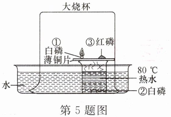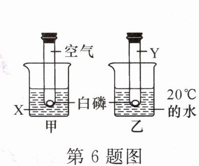 6. 为探究“燃烧条件之一是温度要达到可燃物的着火点”,小明同学进行了如图所示实验,在实验中观察到:甲中白磷燃烧,乙中白磷不燃烧(已知:白磷的着火点是40℃)。