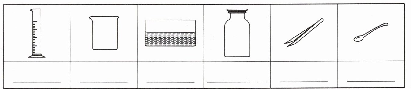 量筒 烧杯 水槽 集气瓶 镊子 药匙