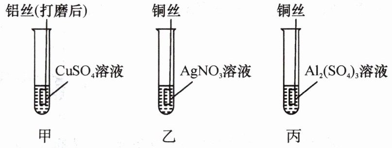 C.由实验甲、乙、丙可知金属活动性:Al>Cu>Ag
