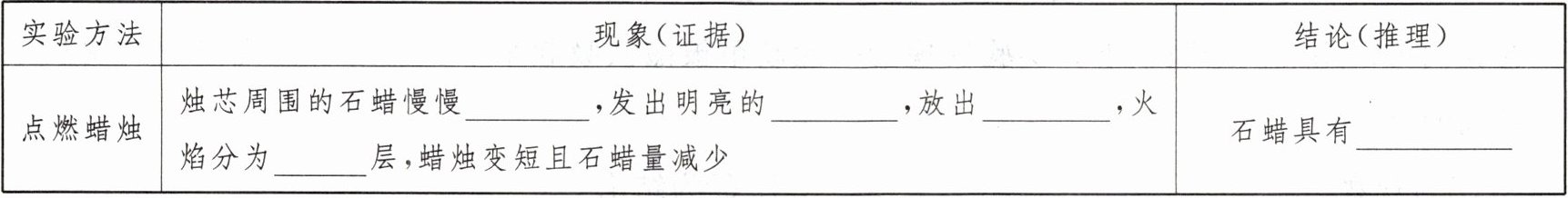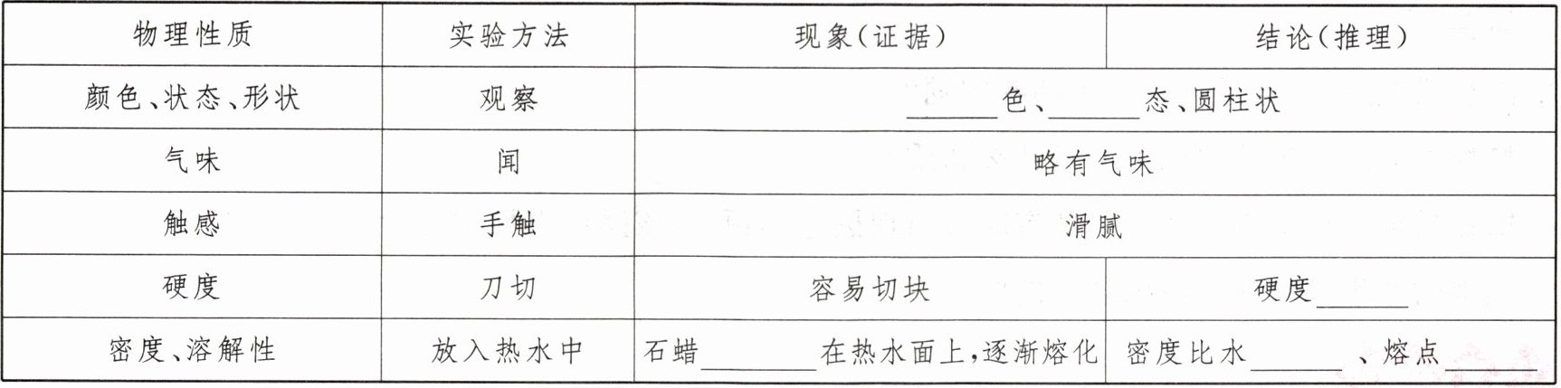 活动1 观察并分析点燃前蜡烛的性质,完成下列表格。