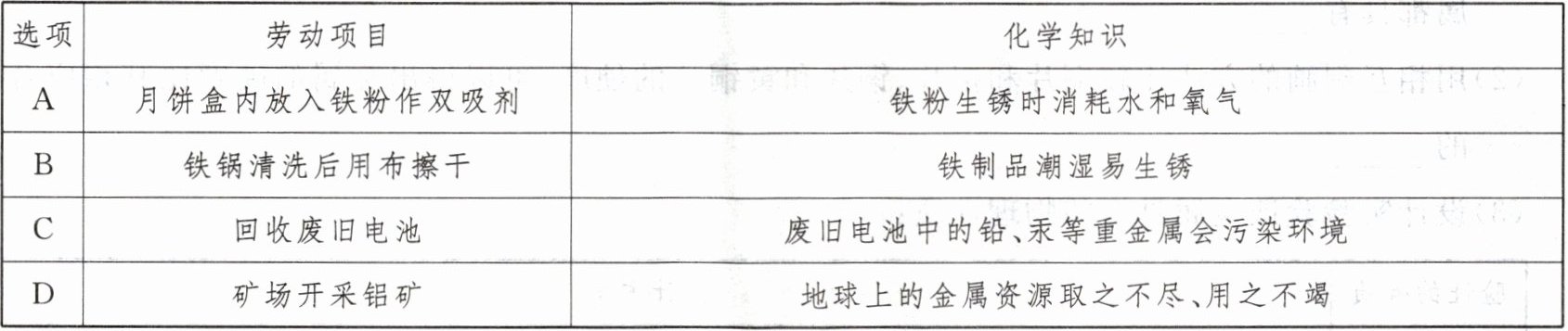 5. 劳动创造幸福生活。下列劳动项目与所涉及的化学知识不相符的是(