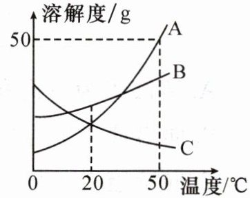 )A.50 °C 时,三种物质的溶解度由大到小的顺序是 A>B>C