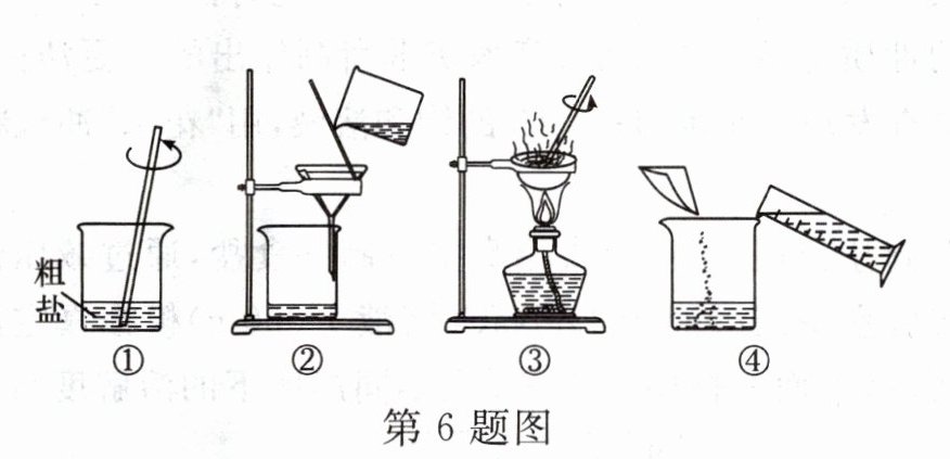 6. (2022·岳阳)小文同学做粗盐(含难溶性杂质)提纯的实验并计算精盐产率,如图是部分操作示意图,请回答下列问题。