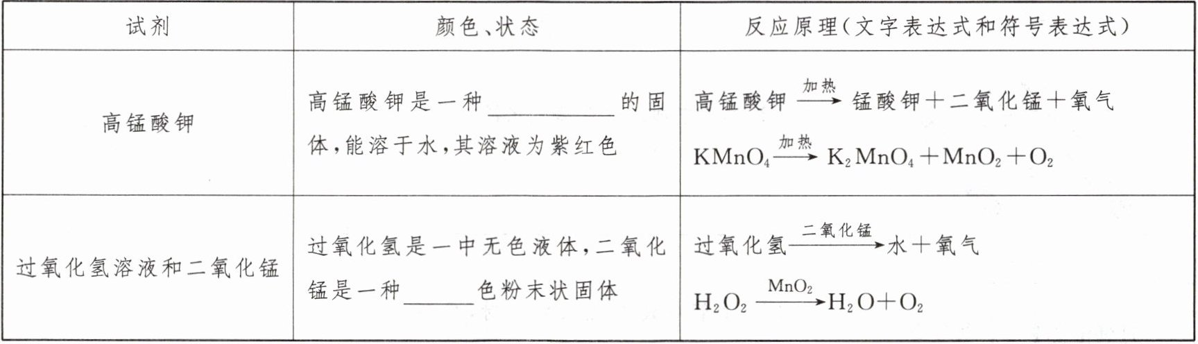 归纳:通过分析以上制取氧气的反应原理我们可以得知。