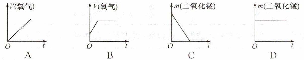 5. 某同学取用一定量的过氧化氢溶液与二氧化锰混合制取氧气,下列有关氧气的体积[$V(氧气)$]、二氧化锰的质量[$m(二氧化锰)$]与时间$(t)$之间的关系图正确的是(