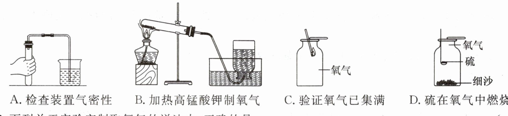 2. 实验室用高锰酸钾制取氧气并验证氧气的性质,下列操作正确的是(