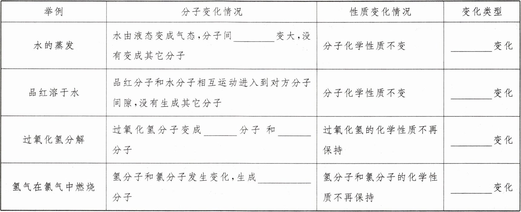 活动1 阅读教材P59相关内容,分析物理变化、化学变化中分子的变化情况。