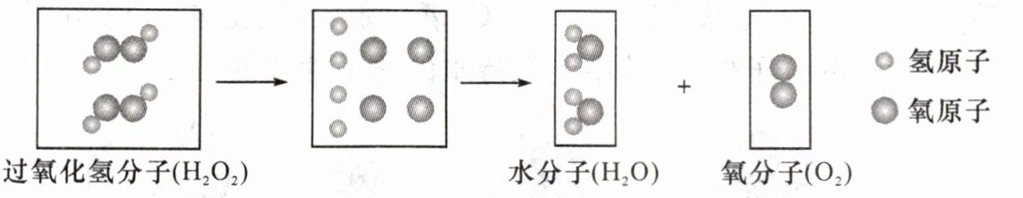1. 过氧化氢分解制氧气的过程中,分子与原子的关系。