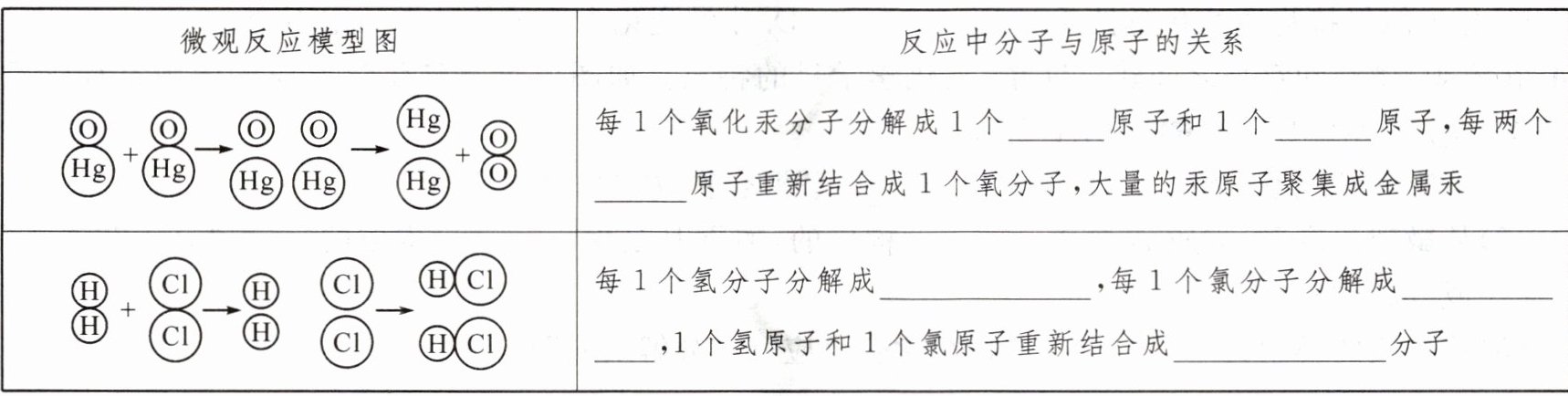 重新结合成1个氧分子。2. 加热氧化汞、氢气在氯气中燃烧过程中分子与原子的关系。