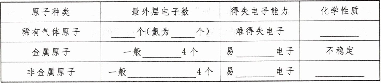 的结构为相对稳定结构。金属和非金属原子的化学性质与其核外电子排布特别是最外层电子数