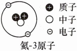 3. 嫦娥五号探测器探测到月球矿物中含有丰富的氦 - 3,氦 - 3 是核聚变的重要原料。如图是氦 - 3 原子的构成示意图,下列说法正确的是 (