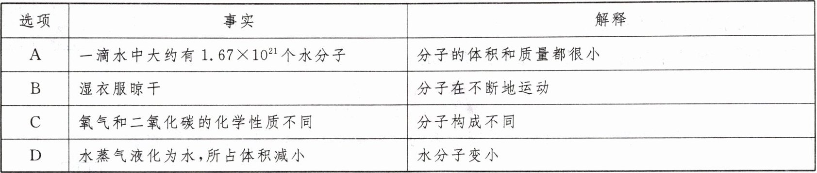 1. (2024·中山期中)下列事实的微观解释不正确的是 (