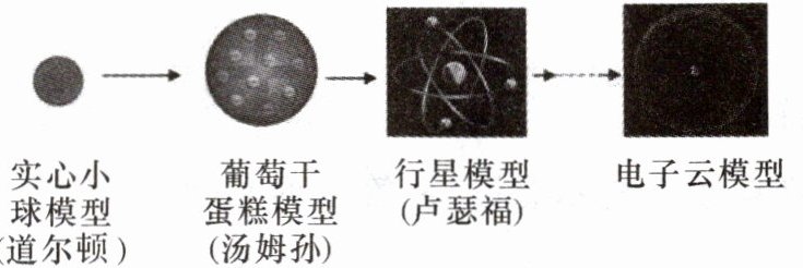 ①公元前 5 世纪古希腊学者曾指出:万物是由不连续的、看不见的微小粒子构成的。②1803 年,英国科学家道尔顿创立原子论:一切物质都是由原子构成的,原子很小,呈圆球状,不可再分,但由于受当时实验条件限制,道尔顿无法用事实证明自己的观点。③1811 年,意大利科学家创立分子学说,指出:有些物质是由分子构成的。④1897 年,英国科学家汤姆孙通过实验发现了电子,提出“葡萄干布丁”模型;1911 年英国科学家卢瑟福用一束带正电荷的α粒子轰击金箔,发现了原子核,得出“有核原子模型”;1919 年,卢瑟福和他的助手在实验中发现了质子;1932 年,经过科学家们的反复实验发现了中子。⑤20 世纪 80 年代中期,人们借助扫描隧道显微镜观察到原子在物质表面的排列状况。