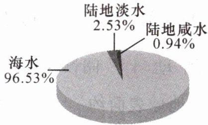 1. 根据如图全球海水、陆地水储量比,下列说法错误的是(