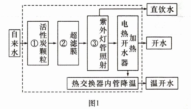 6. 图1是校园里安装的直饮水机多级净化的示意图。