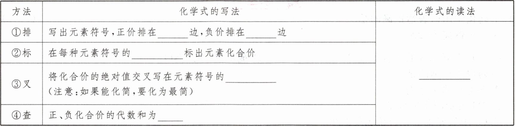点拨:个别物质化学式书写不按“正价在左,负价在右”,如氨气NH₃(氮元素为-3价),甲烷CH₄(碳元素为-4价)等。
