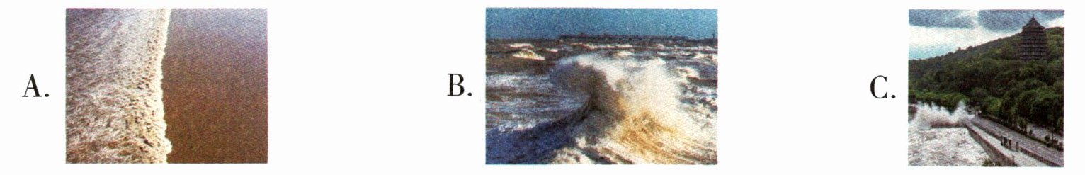 【材料二】潮头已在前面不远的地方了,仿佛兵士排着队,穿着雪白的服装,滚滚地直向石塘扑来。