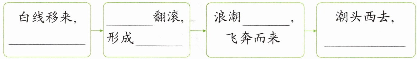 白线移来,______ 翻滚,形成______ 浪潮______,飞奔而来 潮头西去,______