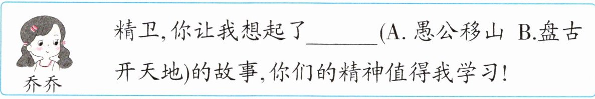 精卫,你让我想起了______(A. 愚公移山 B.盘古开天地)的故事,你们的精神值得我学习!