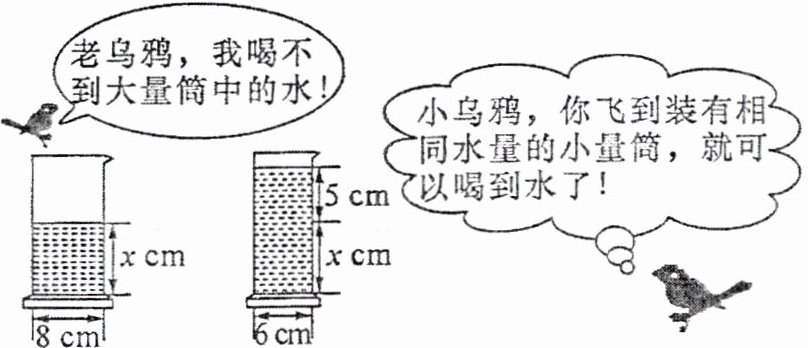 $6. $杭州外国语校本经典题$ $用直径为$ 200 mm $的钢柱锻造一块长、宽、高分别为$ 300 mm,$$300 mm $和$ 80 mm $的长方体毛坯底板$. $问应截取钢柱多少长$?$设应截取钢柱$ x mm,$则可列方程为