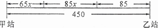2. 甲、乙两站间的路程为450千米,一列慢车从甲站开出,每小时行驶65千米,一列快车从乙站开出,每小时行驶85千米。快车先开1小时,两车相向而行,慢车行驶多少小时后两车相遇?
