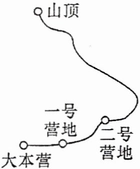 4. 某北京四中校本经典题 如图,甲、乙两支登山队沿同一条路线同时向山顶进发,甲队从距大本营1km的一号营地出发,每小时行进1.2km;乙队从距大本营3km的二号营地出发,每小时行进0.8km。多长时间后,甲队在途中追上乙队?