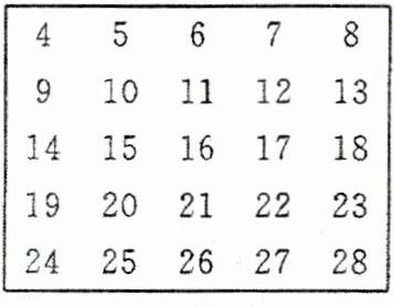 (1)横行上相邻两数之差(大数减去小数)为1,竖列上相邻两数之差(大数减去小数)为5.